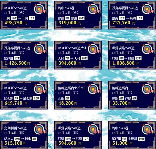 ここは本当信用できると思う! まず他と違って、このプランはいいとか、このプランは悪いって教えてくれるし やるべきレースをちゃんと教えてくれる! 他はポイント買え買えうるさいし、本気でやる気がある人には競艇道はおすすめです。 返信